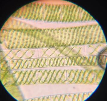 除葉綠體呈帶狀排列外,細胞質也是透明的。